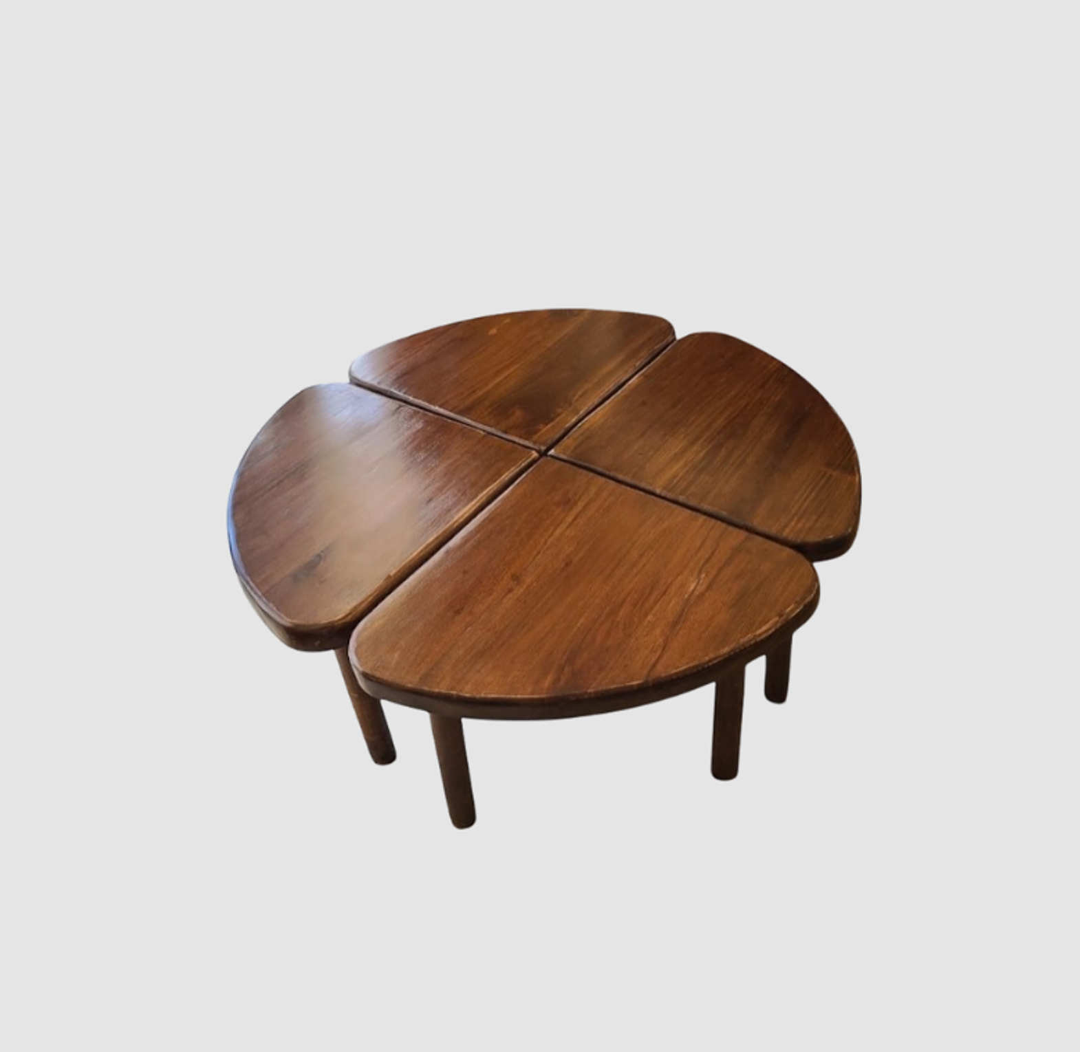 The Clover Leaf Nesting Table Set features four modular tables that fit together into a charming clover-shaped coffee table or separate for versatile side use. Stylish, functional, and space-saving.