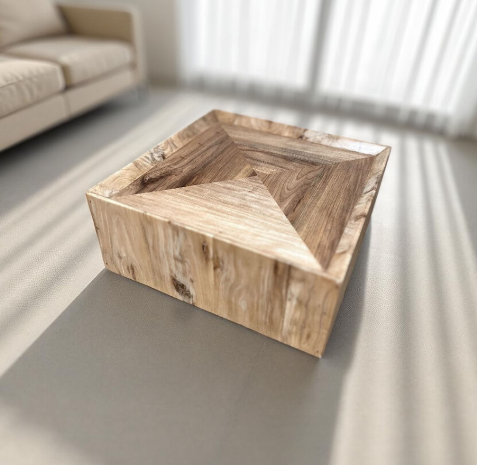 Rustic form meets modern geometry — a solid piece with timeless charm.