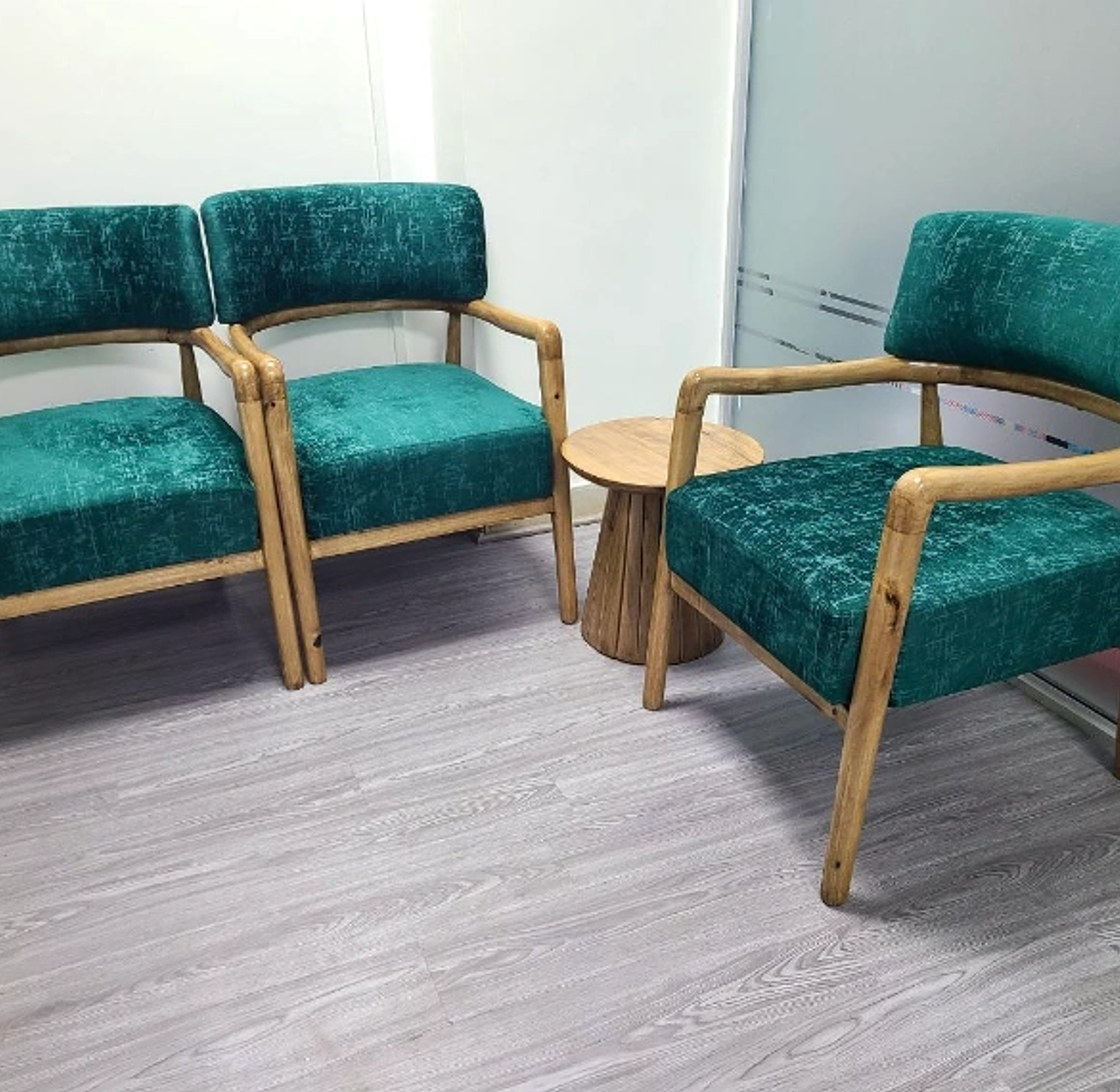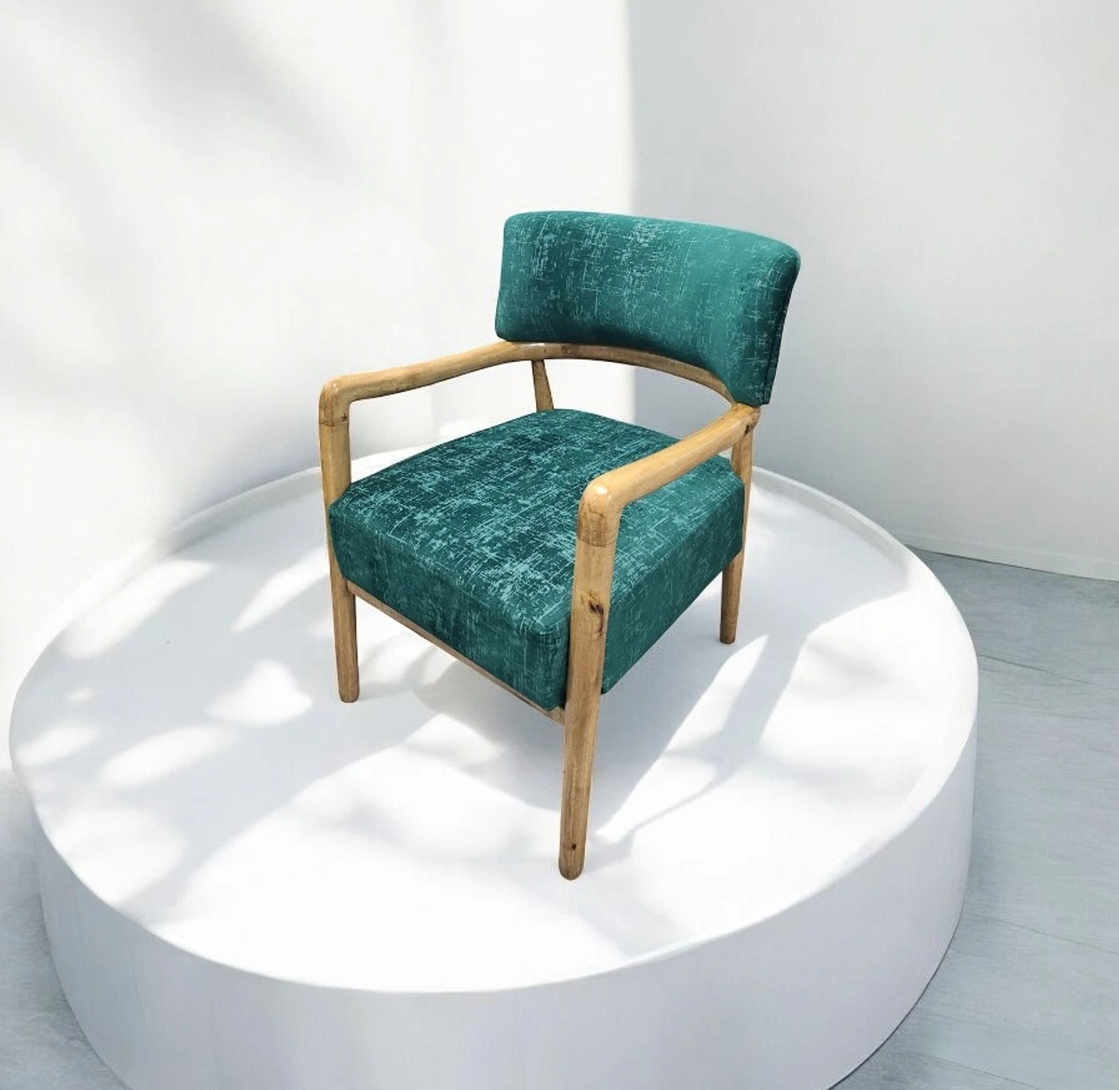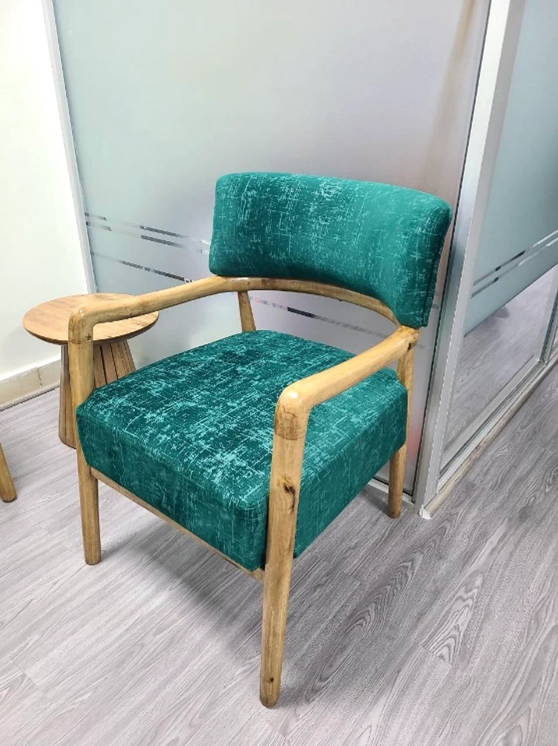 Turn any space into a design showcase with the Luxury Single Chair, a stunning fusion of natural craftsmanship and modern flair. Featuring a solid natural wood frame paired with a rich teal green velvet seat and backrest, this chair captures attention with its bold color and soft, luxurious texture. Its elegant curves and refined finish make it perfect for both contemporary and classic interiors — from cozy corners to stylish lounges. More than just a seat, this accent chair is a statement of sophistication and personality, built to stand out while offering unmatched comfort.