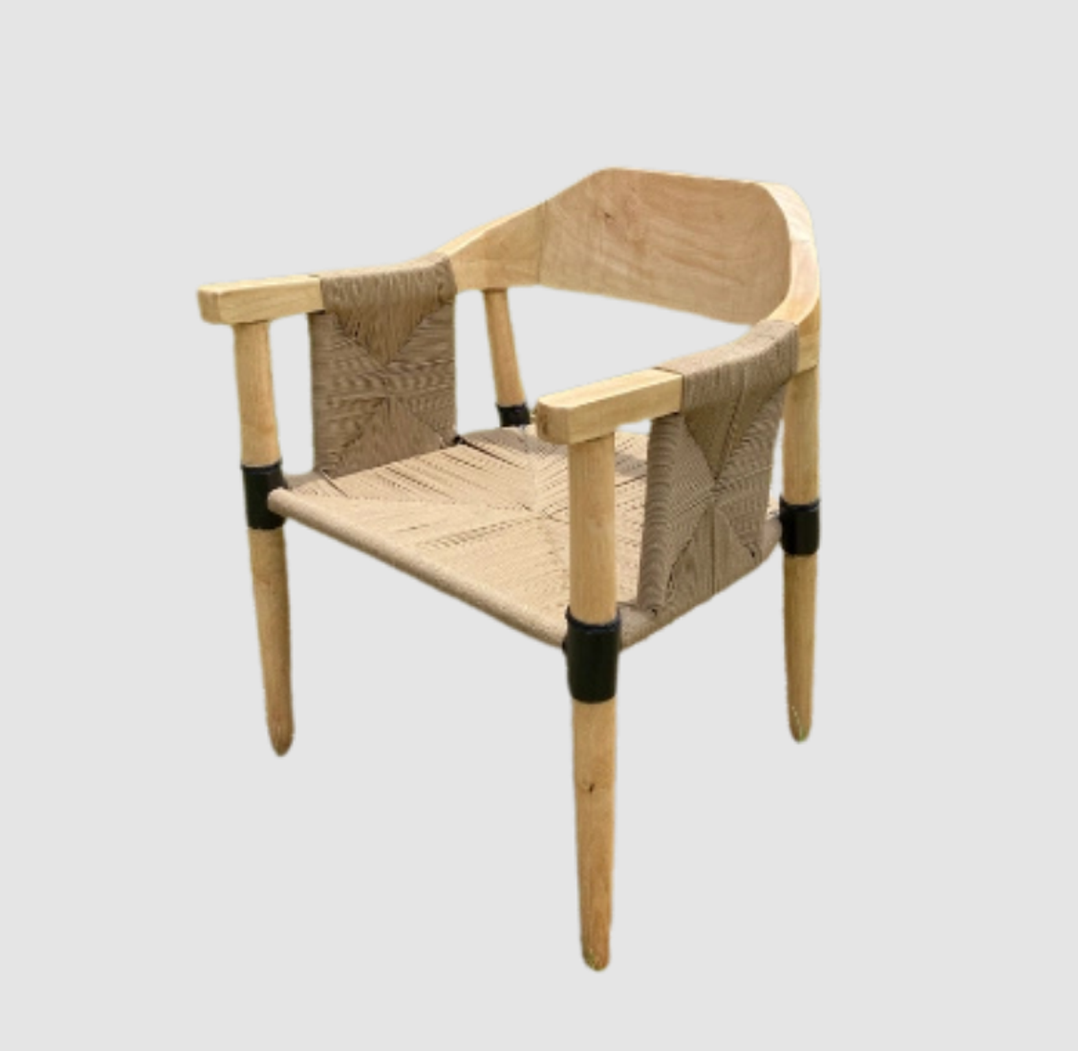 The Outdoor Single Chair blends natural warmth with modern sophistication. Built with a light wood frame, it offers sturdy support and timeless appeal, while the comfortable upholstered seat ensures relaxation in any setting. The black-wrapped armrest details add a striking contrast, giving the chair a distinctive, contemporary edge. Perfect for patios, balconies, or indoor-outdoor spaces, this piece combines artistic craftsmanship and everyday comfort — making it as visually appealing as it is functional. Durable, stylish, and versatile, it’s the ideal addition to any modern living environment.