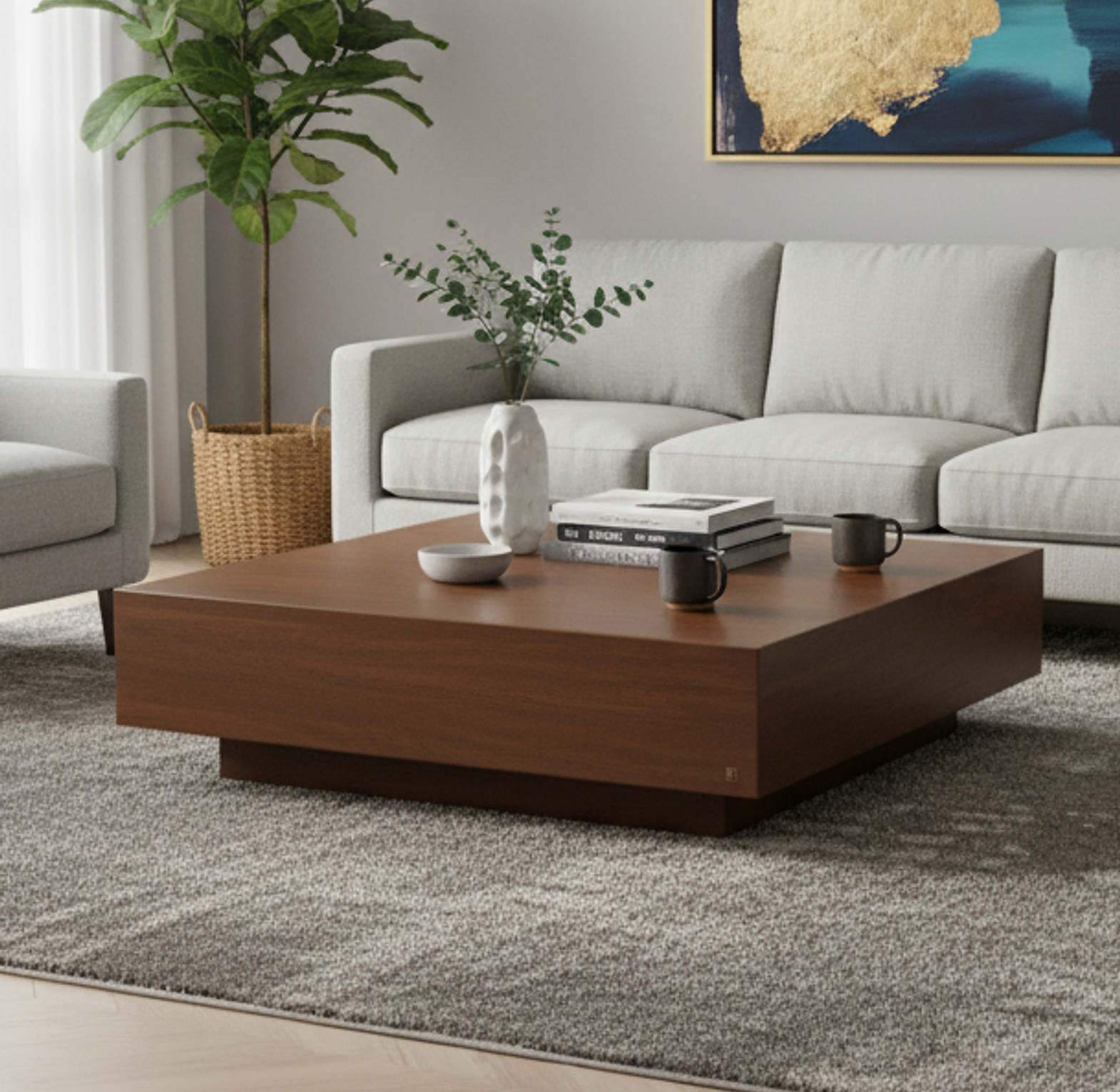 The Simple Platform Coffee Table features a sleek, low-profile silhouette crafted from solid wood. Its minimalist design and natural grain finish make it an elegant focal point for any living space.
