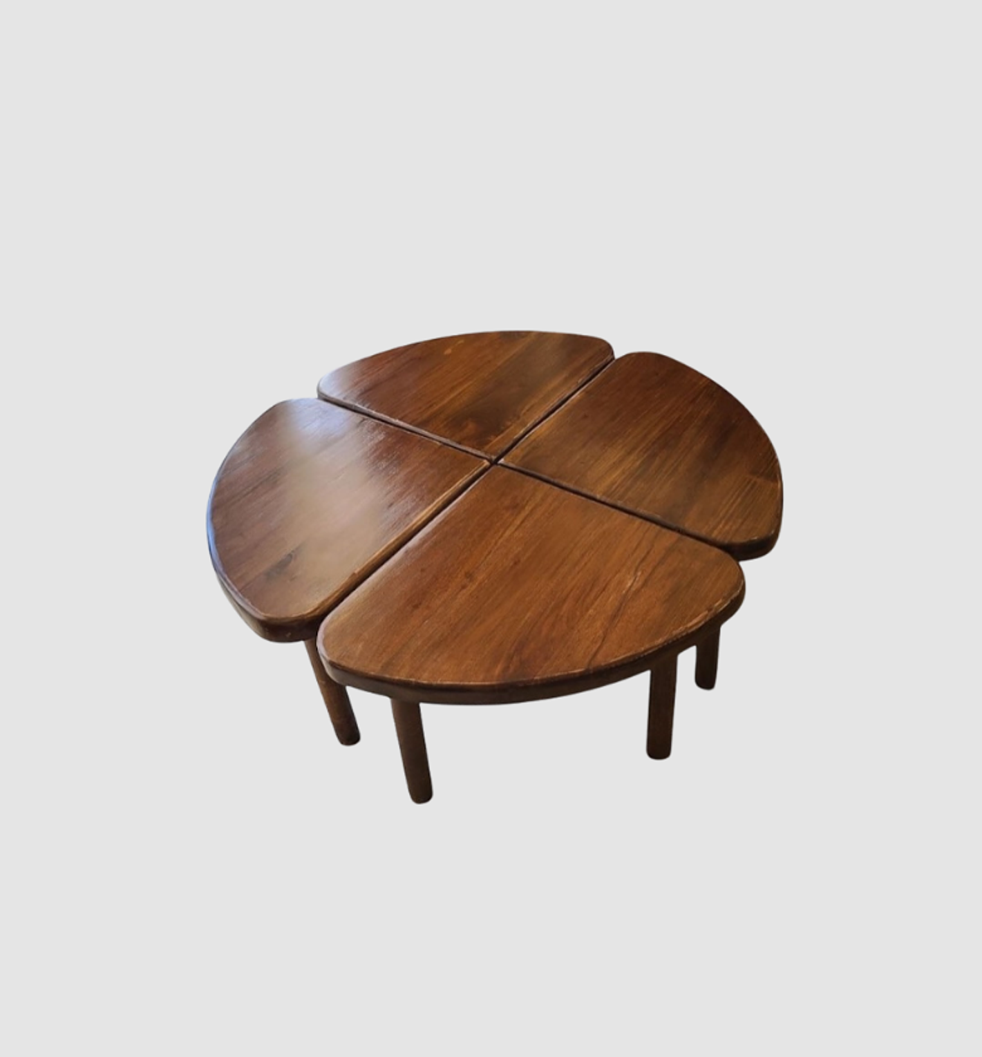The Clover Leaf Nesting Table Set features four modular tables that fit together into a charming clover-shaped coffee table or separate for versatile side use. Stylish, functional, and space-saving.