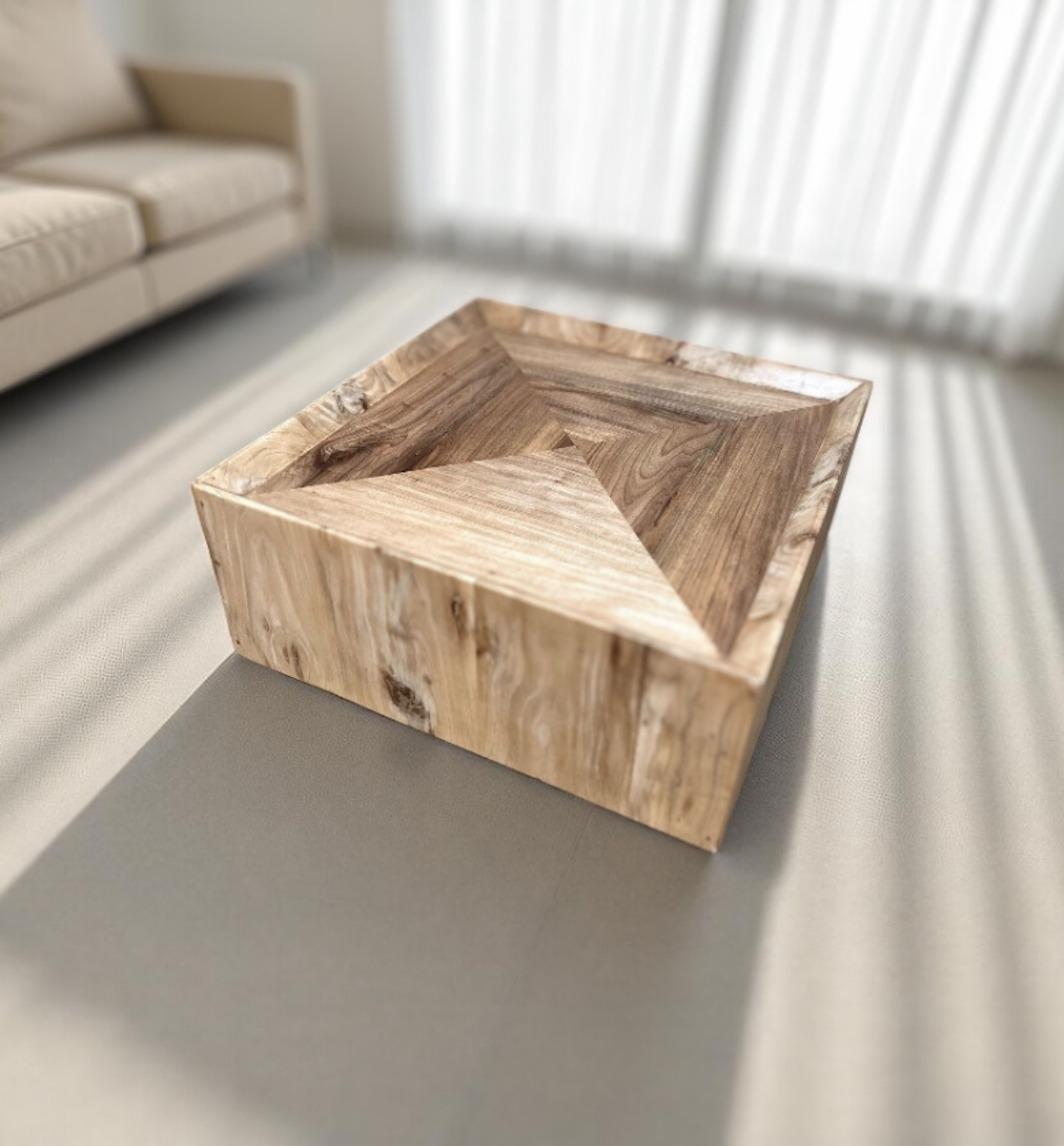 Rustic form meets modern geometry — a solid piece with timeless charm.