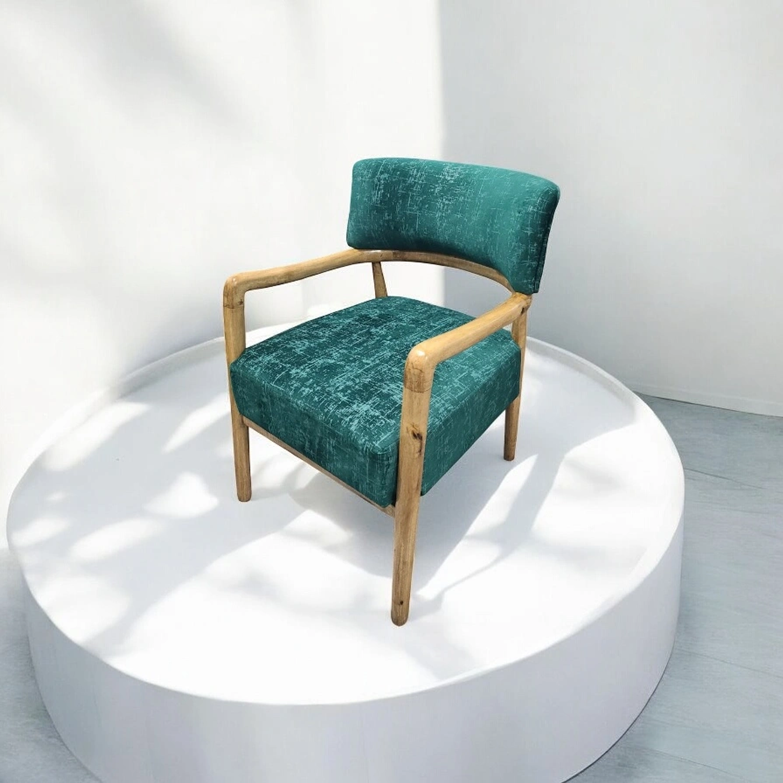 Turn any space into a design showcase with the Luxury Single Chair, a stunning fusion of natural craftsmanship and modern flair. Featuring a solid natural wood frame paired with a rich teal green velvet seat and backrest, this chair captures attention with its bold color and soft, luxurious texture. Its elegant curves and refined finish make it perfect for both contemporary and classic interiors — from cozy corners to stylish lounges. More than just a seat, this accent chair is a statement of sophistication and personality, built to stand out while offering unmatched comfort.
