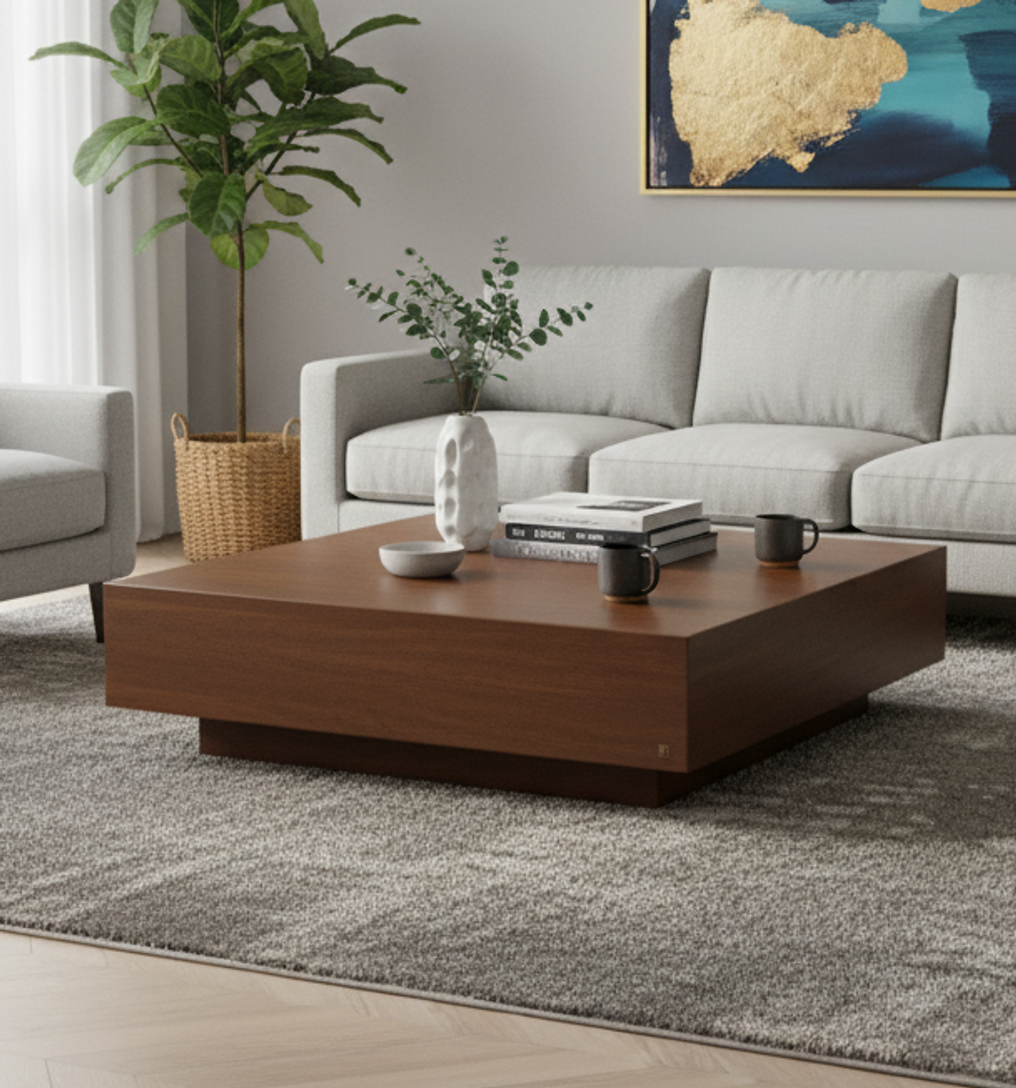 The Simple Platform Coffee Table features a sleek, low-profile silhouette crafted from solid wood. Its minimalist design and natural grain finish make it an elegant focal point for any living space.